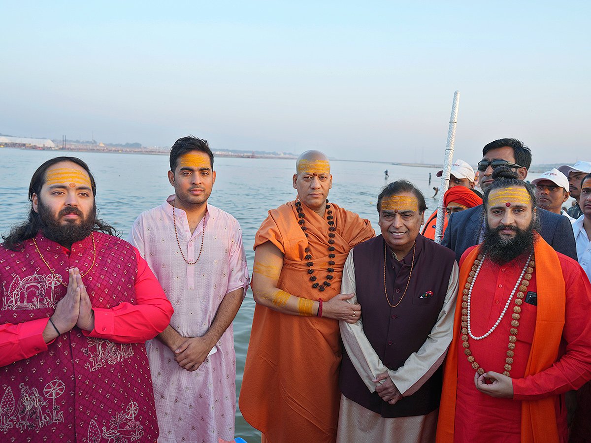 મુકેશ અંબાણી એ લગાવી ત્રિવેણી સંગમ માં આસ્થા ની ડૂબકી